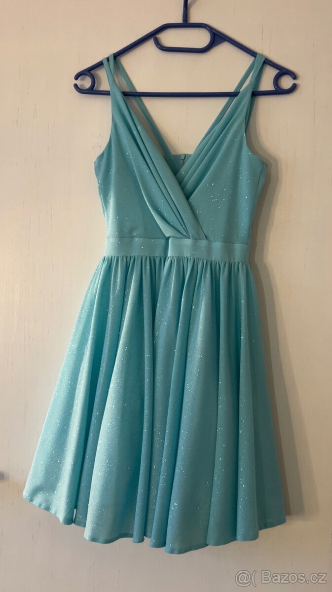 Krátké,třpytivé,světle modré šaty