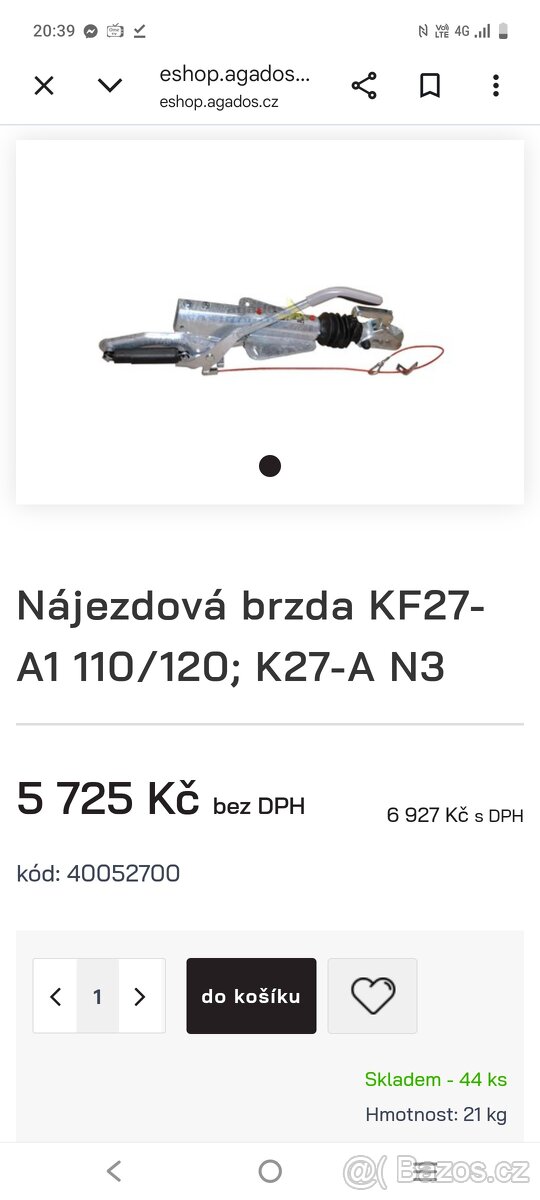 Nájezdová brzda KF27-A1 110/120; K27-A N3 původní cena 6 927kč nyní 5300