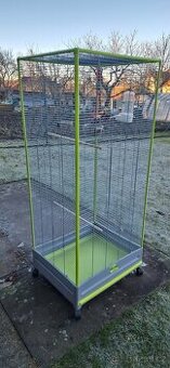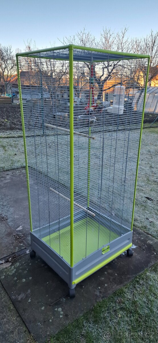 Nabízím klec či voliéru celoplastová se spodním šuplíkem pro snadnější čištění. Šířka 54cm výška 147cm hloubka 65cm. Má 4 menší dvířka šířka 12cm x výška 13cm a jedny velké pro vlet či výlet šířka 24cm x výška 36cm. Klec či voliéra je plně vybavená, funkční kolečka, jen nastěhovat ptáčka. Po dohodě je možné voliéru dovézt(Brno-město a Brno-venkov).