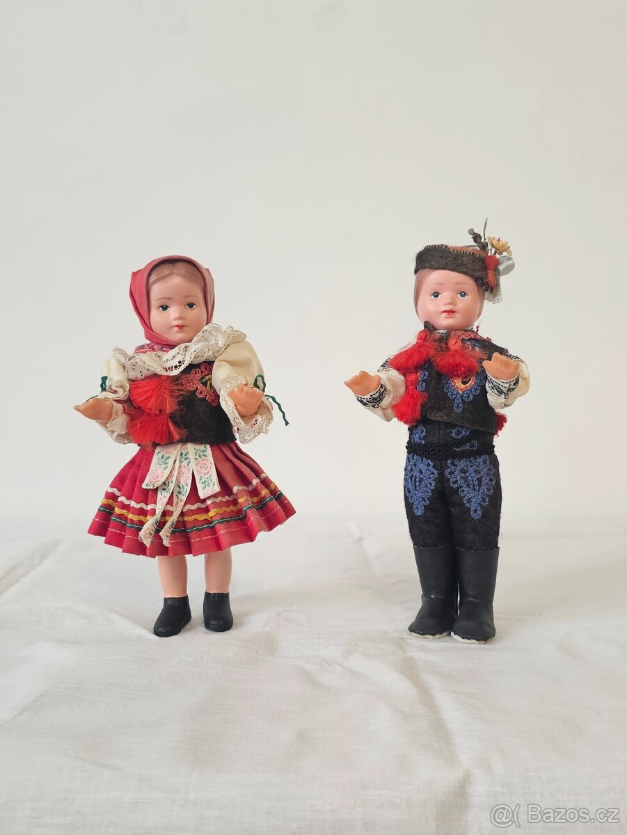 Prodám retro panenky v krojích - děvče a šohaj. Výška cca 21 cm. Osobní předání v Prostějově.