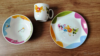 Nabízím sadu porcelánového nádobí Tescoma pro dívky včetně příborů (foto lžiček upraveno kvůli odrazu). Rozsah a stav viz. foto. Osobní předání v MB nebo Balíkovna.