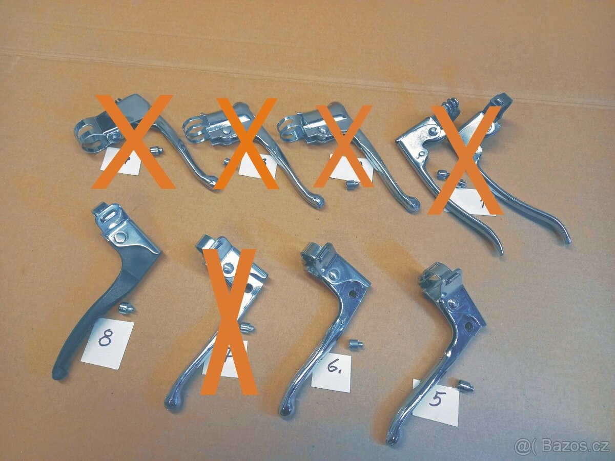 č.2 nepoužitá 120,-Kč, č.3,4 perfektní 90,-Kč, č.5 nepoužitá 120,-Kč,č.6,7,8 perfektní 90,-Kč, č.11 za 70,-Kč, cena za kus, EDGE 120,-Kč Páky FAVORIT repasované, perfektní stav, č.1,2,3,4,5 220,-Kč, č.6 290,-Kč, č.7 260,- cena za pár.
