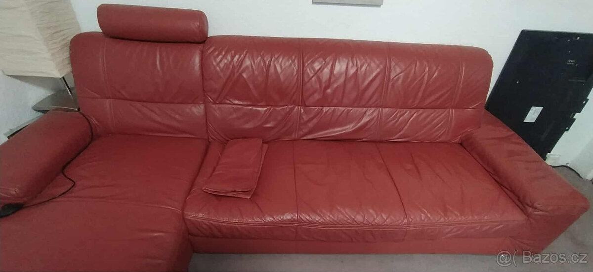 Sedací souprava rohová,kvalitní kůže bez poškození. jedna pružina vyskočila ale dá se opravit.pouze osobní odběr.