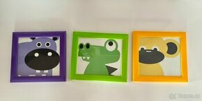 Prodám sadu 3 Ks dětských obrázků 22x19 cm v barevných rámech se sklem. Nepoškozené a i jen rámy lze bezproblémově použít. Možný osobní odběr Praha nebo poslání přes zásilkovnu. Vice obrázků v inzerci.
