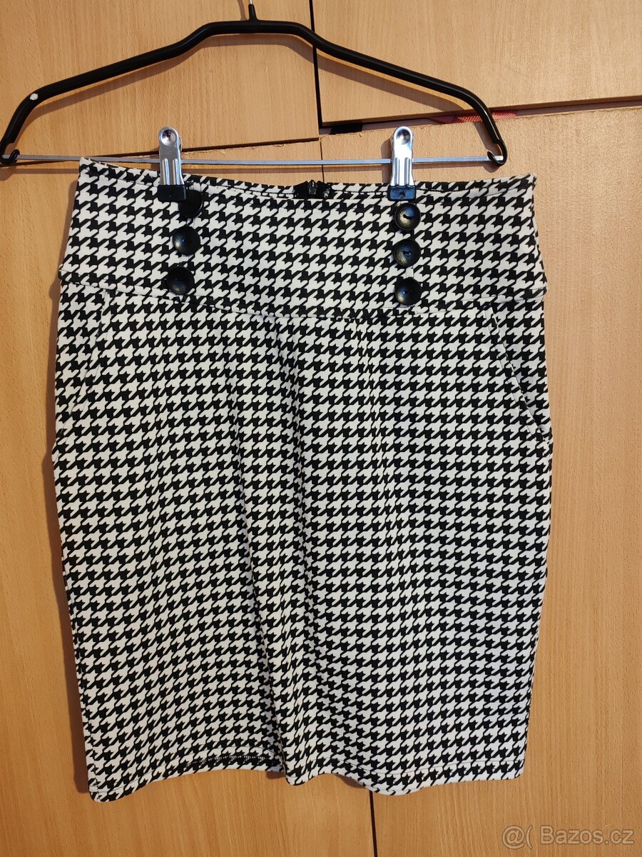 Sukně se vzorem kohoutí stopy, zapínání vzadu na zip. Elastická,velikost M.