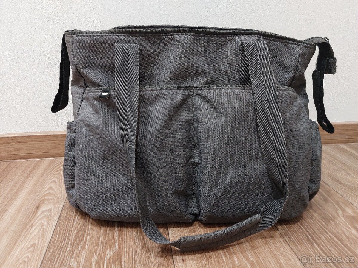 Nepoškozená, upevnitelná na kočárek. Na zadní straně velká kapsa na zip, na přední straně 2 menší kapsy, po stranách 2 kapsy na lahvičku. Uvnitř 5 menších kapes a jedna velká na zip. PC 679Kč