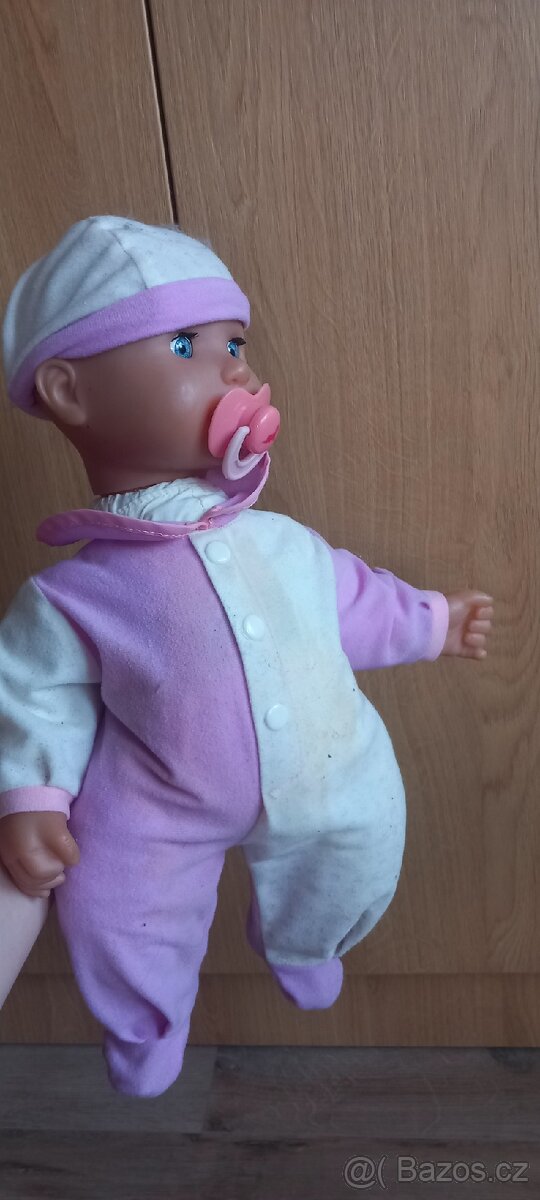 30cm, plastové mrkací miminko s čepičkou oblečkem a dudlíkem