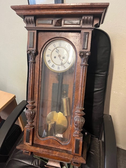Prodám starožitné nástěnné mechanické hodiny s kyvadlem,začátek 20. století. Dřevěná skříň, klasický vídeňský styl, natahování klíčkem. Cena: • 3900 Kč
