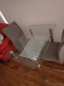 Prodám skleněný jídelní stůl 90x60 cm, výška 75 cm. Bez poškození. Neposílám, pouze osobní odběr.