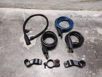 Nabízím zámky ke kolu,použité,funkční,2 zámky mají pouze 1 klíč,nevím zda ty držáky patří k těmto zámkům,nezasílám-pouze osobní předání Pardubice ve středu nebo o víkendu,kontakt emailem nebo volat,na sms neodpovídám. cena za vše