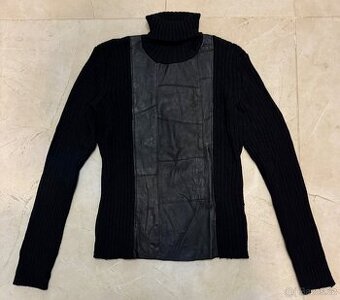 Dámský černý vlněný rolák s kůží Soda, vel.M