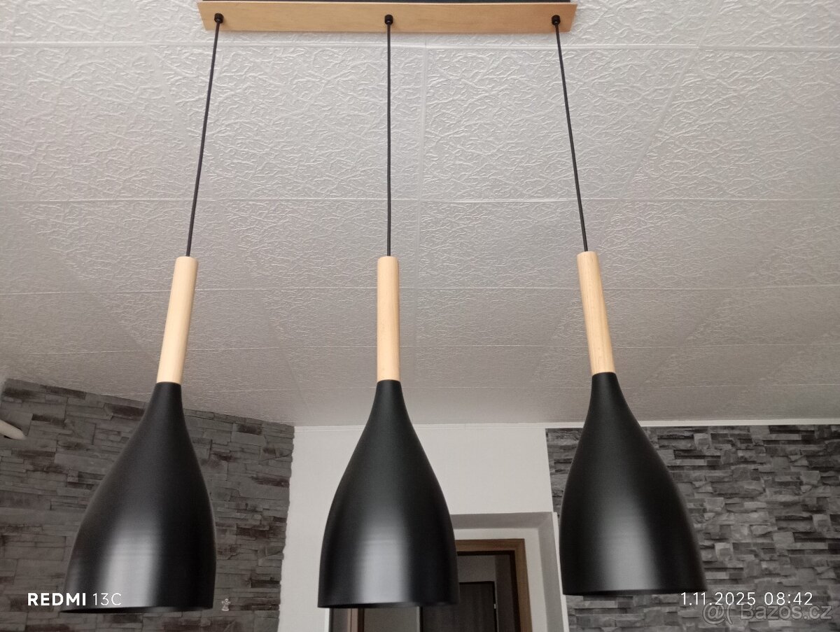 Prodám, světlo.Kombinace černé sklo se drevem.Zavit E27