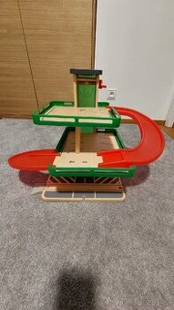 Drevena garaz, dobry stav, mirne upraskla uchytka zespodu jednoho cerveneho sjezdu. Je mozne prilepit napevno.