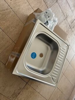 Nerezový dřez NEPOUŽITÝ – čtvercový tvar, jednodřezový, s odkapem, nerezový materiál, oboustranná orientace dřezu, špuntová výpusť, s připojením na myčku, nerezová barva, celkové rozměry dřezu: 60 cm × 60 cm × 15 cm (D׊×H), rozměry vany: 36 × 41 × 15 cm (D׊×H) k dispozici 1 kus