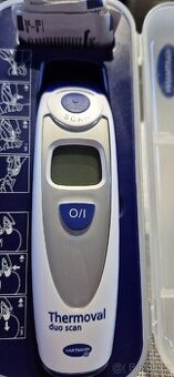 Prodám digitální teploměr. Thermoval® duo scan je digitální dotykový infračervený teploměr se dvěma způsoby měření v uchu a na čele. Měří přesné výsledky a to již do 3 vteřin. Popis produktu: -měření pomocí speciálního infračerveného senzoru (na čele nebo v uchu) -jemné, nenásilné měření na čele (speciálně u dětí, které mají špatnou zkušenost se zánětem středního ucha a tzv. „pícháním uší“) -délka měření pouze 3 sekundy na čele, 1 sekunda v uchu přesnost měření ověřena v klinické praxi -výsledek posledního měření vždy uložen v paměti -jednoduché ovládání jen jedním tlačítkem -akustický a optický signál při zahájení a ukončení měření -moderní design pro pohodlné a příjemné držení v ruce -odjímatelný nástavec pro měření na čele -ergometrické, vodotěsné -vysoká životnost baterií s kapacitou 1000 měřících cyklů Pc : 1200kč Záruka už není.