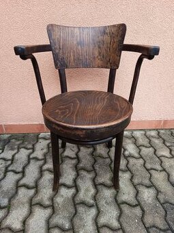 Prodám originál ohýbanou židli THONET s područkami, s původním štítkem z obd.1920-40. Konstrukce je pevná, bez prasklin. Povrch a lak odpovídá stáří - krásná jemná patina ve vintage stylu. Nádherný a zajímavý kousek. Předání pouze osobně.
