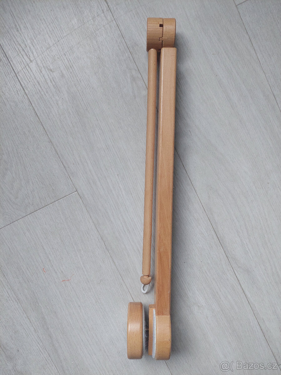 Dřevěné rameno Sigikid na kolotoč nad postýlku nebo jiné závěsné hračky. Rameno je nastavitelné do různých úhlů a k postýlce se připevňuje utahováním šroubu. Plně funkční, jen odštíplý kousek dřeva.