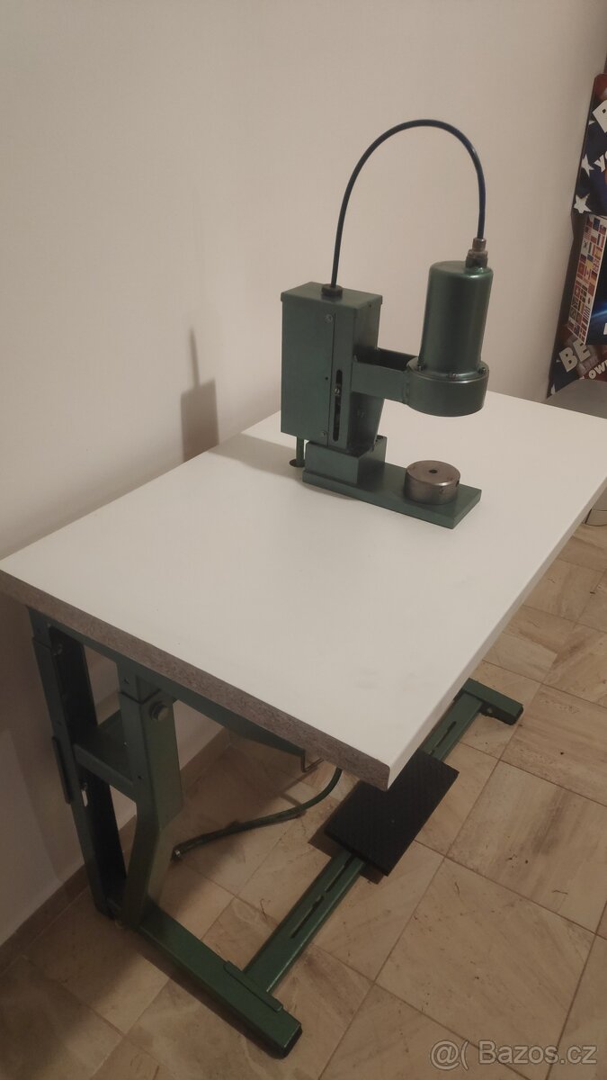 Prodám pneumatický lis s regulací. Původně byl používán na druky a knoflíky. Lis je na ovládání nohou. Včetně stolu. Lis je čistý a bez úniků. Široká škála možností použití. Dohoda možná. Více informací na telefonu.