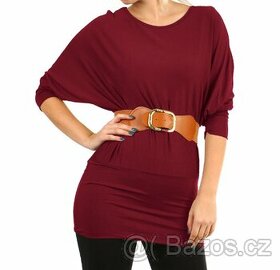 Dámské tričko s netopýřími rukávy - vínová