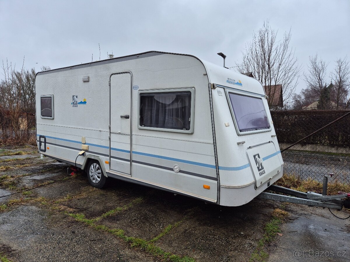 Prodám náš rodinný karavan Knaus azur 495 rok výroby 1995 dovezený z Holandska, který vlastním od roku 2020. STK do 10.9. 2026. Nosnost z TP 1090kg/1300kg. Karavan má francouzskou postel 140x200 cm plus rozkládací spaní ze sezení (po rozložení také 140x200 cm.. Rozkládací sezení lze rozšířit a tím naskládat děti nebo vnoučata napříč. (Pak se vejdou tři.) Polštáře sezení jsou nově potažené, protože staré byli hodně opotřebované. V karavanu je tlakové čerpadlo a zásobník 40l na vodu. 15l plynový bojler. Plynové topení s rozfukem. Trezor. Televize. Radio s možností připojení Bluetooth. USB nabíječka u rádia. Lampičky s USB. Venkovní zásuvka 12V + USB nabíječka. Venkovní přípojka plynu. Kazetové WC. WC kombinované se sprchou. Fotovoltaické panely s MPPT regulátorem. Bohužel poslední rok pozoruji špatný výkon solárních panelů a horší stav baterie, nechci ale tyto věci měnit před prodejem, aby si případně každý mohl pořídit co bude chtít. Měnič s čistou sinusoidou 1200 W. V ceně kara