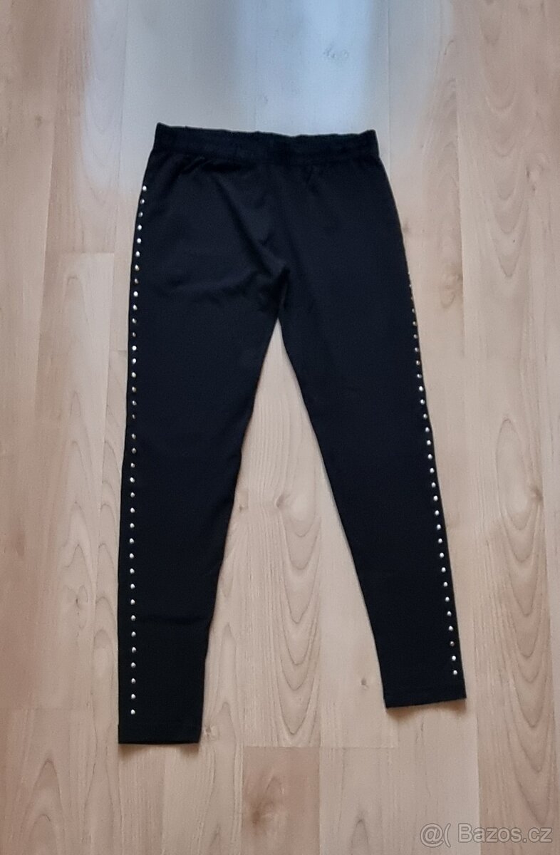 Krásné černé legíny. Na stranách jsou stříbrné cvočky. Velikost 12/40 Značka Atmosphere. Cena 100 Kč + 70 Kč poštovné. Akce 2 + 1 zdarma ;-)