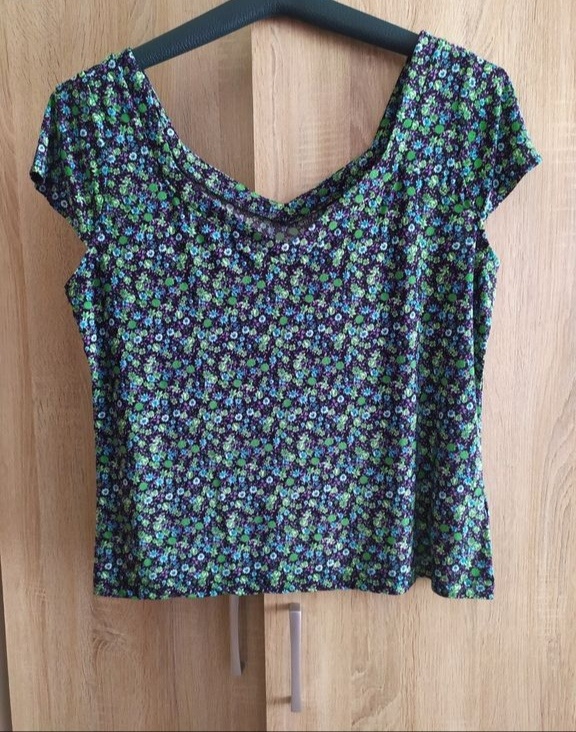Krásná nová halenka, velikost 44/46.Delka 64 cm, přes prsa 110 cm.
