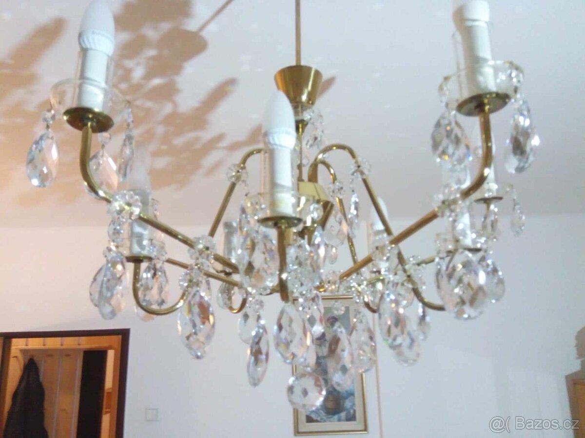 Prodám křišťálový lustr, Jablonec. Nese známky užívání, na funkci nemají vliv.