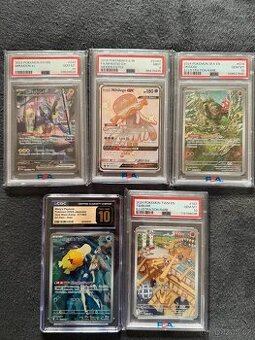 Cena: V textu. Prodám z osobní sbírky ohodnocené pokémon karty a zabalené produkty: Mistys Psyduck JAP CGC 10 Pristine - 2500,- Nihilengo PSA 9 - 1500,- Miraidon ex PSA 10 - 4600,- Timburr PSA 10 - 1600,- Okidogi PSA 10 - 1900,- Rozšiřující ilustrace Mega Evolution včetně karty MEG Bulbasaur 133/132 - 1500,- Crown Zenith - unown v & lugia v - rozbaleny jeden case - top stav 6 kusů - 2000,-/kus Silver Tempest Booster box - 9000,- prodáno Shrouded Fable Booster Bundle Display - natržená folie na zadní straně viz.foto - 9000,- Silver Tempest Elite Trainer Box - dvě mikro trhliny na folii - 1900,- prodáno Paldea Evolved Elite Trainer Box - mikro trhlina na rohu boxu - 2500,- prodáno Preferuji osobní předání Teplice - Ústecký kraj. Možnost odeslat zasilkovnou nebo balikovnou, po platbě předem na účet. V případě odběru většího množství dohoda.