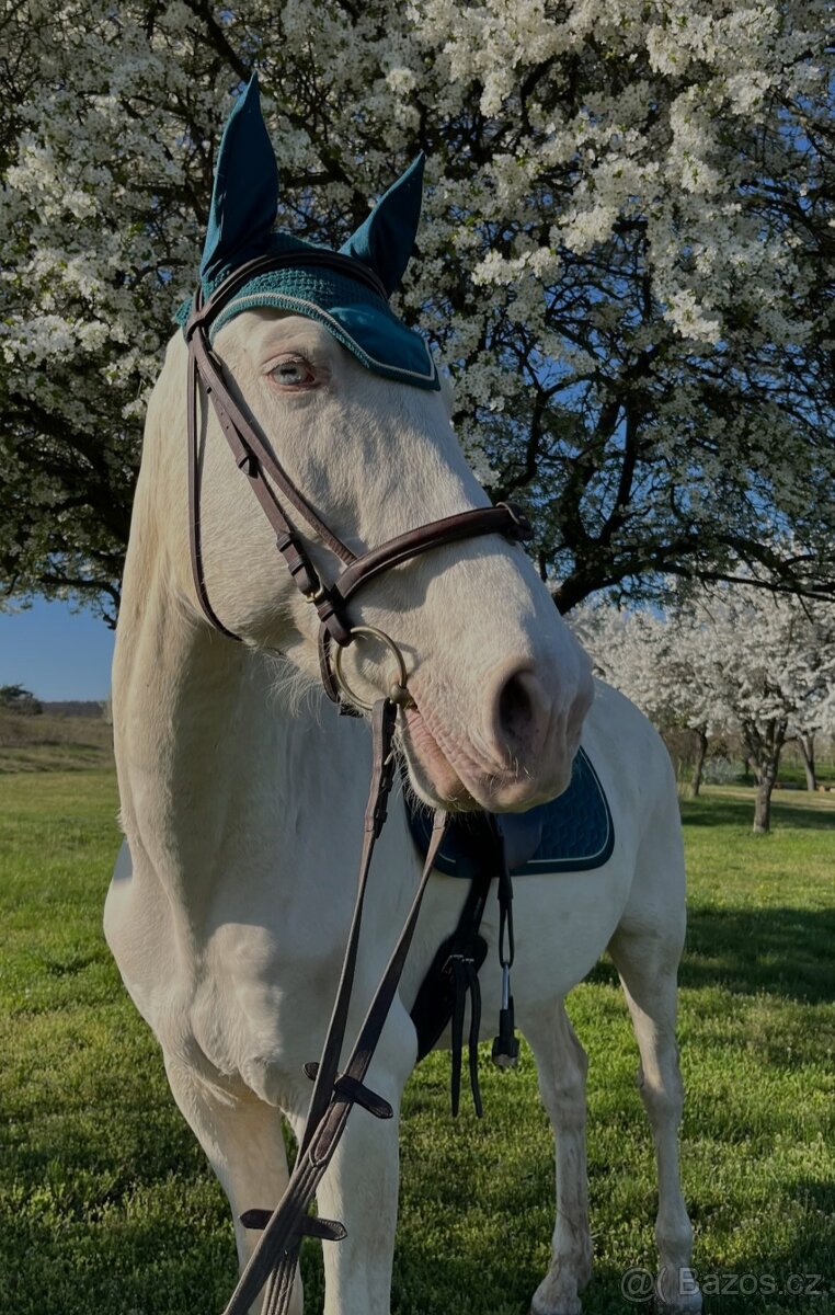 Prodám krásného cremello valacha, nar.2009, zapsaný v plemenné knize ST, otec Patriot Kinský, matka Valsemka. Valach je krásně naježděný, umí přeskok ve cvalu, kontracval, ustupovat na holeň (krok, klus), skáče tak do metru, jemný, chodí ven sám i s koňmi, nikdy se neleká a nevyhazuje, neprchá nikam, řekla bych v tomto prostě dokonalý kůň. Je mazlivý. Nikdy by nekousnul, nekopnul, můžou ho ošetřovat i děti, ale pokud je ve stresu, reaguje přehnaně a uteče, například pokud máte nadávajícího podkováře, tak mu nedá ani nohy. To stejné, pokud mu nesedne stájník, tak ho ani neodvede. Celkově hůře reaguje na cizí lidi. A nechce nastupovat do přepravníku, cesta je pak v klidu. Takto to je, nic netajím, je to opravdu milionový kůň pro stálé majitele a ošetřovatele, potřebuje k sobě klidné, vyrovnané lidi, kteří se nemění. Radši je v boxe, ale u mě je na pastevku s dekou. S koňmi nemá problém, rád si hraje s valachy a hříbaty, je hodně submisivní. V létě se mu pálí akorát nos, takže to chce