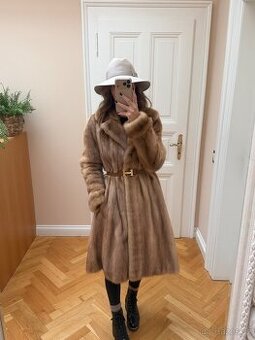 Krásný zlato- hnědý norkovy kožich, pásek neni součástí, volnější strich, bez poškození,velikost ideálně S-M