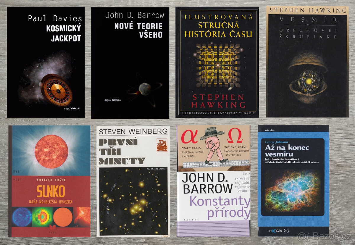 Cena: Dohodou. Až na konec vesmíru-Johnson Černé díry a vesmír-Novikov Člověk a hvězdy-Plavec Einstein, Život, smrt a nesmrtelnost-Kuznecov Filozofické problémy súčasnej fyziky a astronómie-Zajac Ilustrovaná stručná história času-Hawking K horizontom vesmíru-Hajduk Kepler v Praze-Horský Kolumbové Vesmíru-Pacner Konstanty přírody-Barrow Kosmický jackpot-Davies Lidstvo, země, vesmir-Ursul Na křižovatce nekonečna-Parnov Nové teorie všeho-Barrow O čase-Davies Od Galileiho po Einsteina-Kuznecov Oko za 1,5 miliardy dolarů teleskop Hubble-Velfel Poselství kosmických světů-Pacner Poslední tři minúty-Davies První tři minuty-Weinberg Slnko, naša najbližšia hviezda-Rušin Slunce náš život-Dvořák Sto let astronomie-Waterfield Vesmír a člověk-Kleczek Vesmír je náš svět-Grygar Vesmír v orechovej škrupinke-Hawking Vesmír, jaký je-Grygar Vesmírná zastavení-Grygar Vesmírne metamorfózy-Krempaský Vesmírní sousedé naší planety-Kopal Vesmírný posel-Tyson Zo života hviezd-Štohl Nabízím knihy z populární astronomie. Jsou v