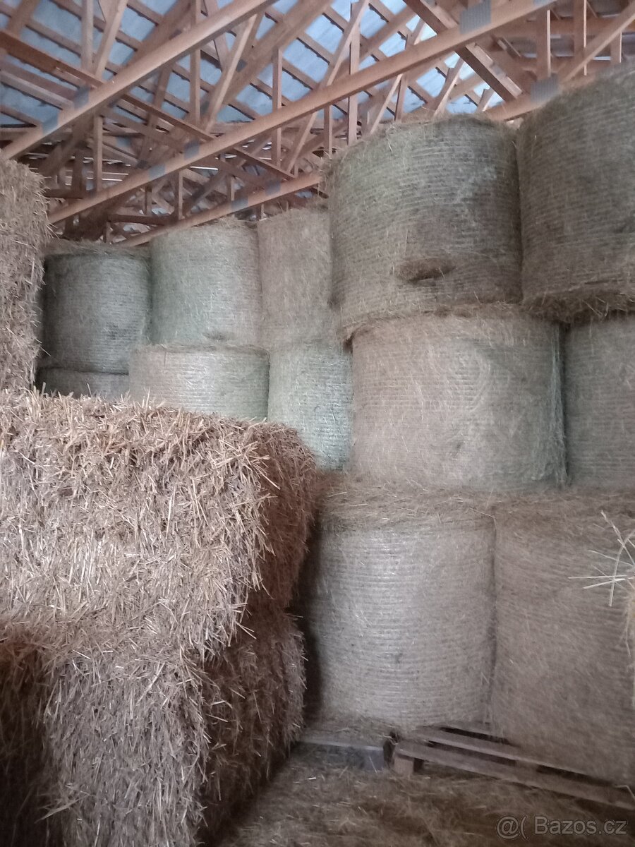 Nabízím kulaté balíky sena , uskladněné v hale. 125-130 cm. Cca 280kg/balík. Máme i malé kulaté balíky.60x70cm pro malé chovatele.
