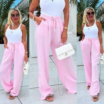 Mušelínové kalhoty long v pase šňůrka a guma Cena 549,- Délka 108, pas 35-44x2 Více kousků v mé inzerci a ve skupince na Facebooku, pište si o odkaz.