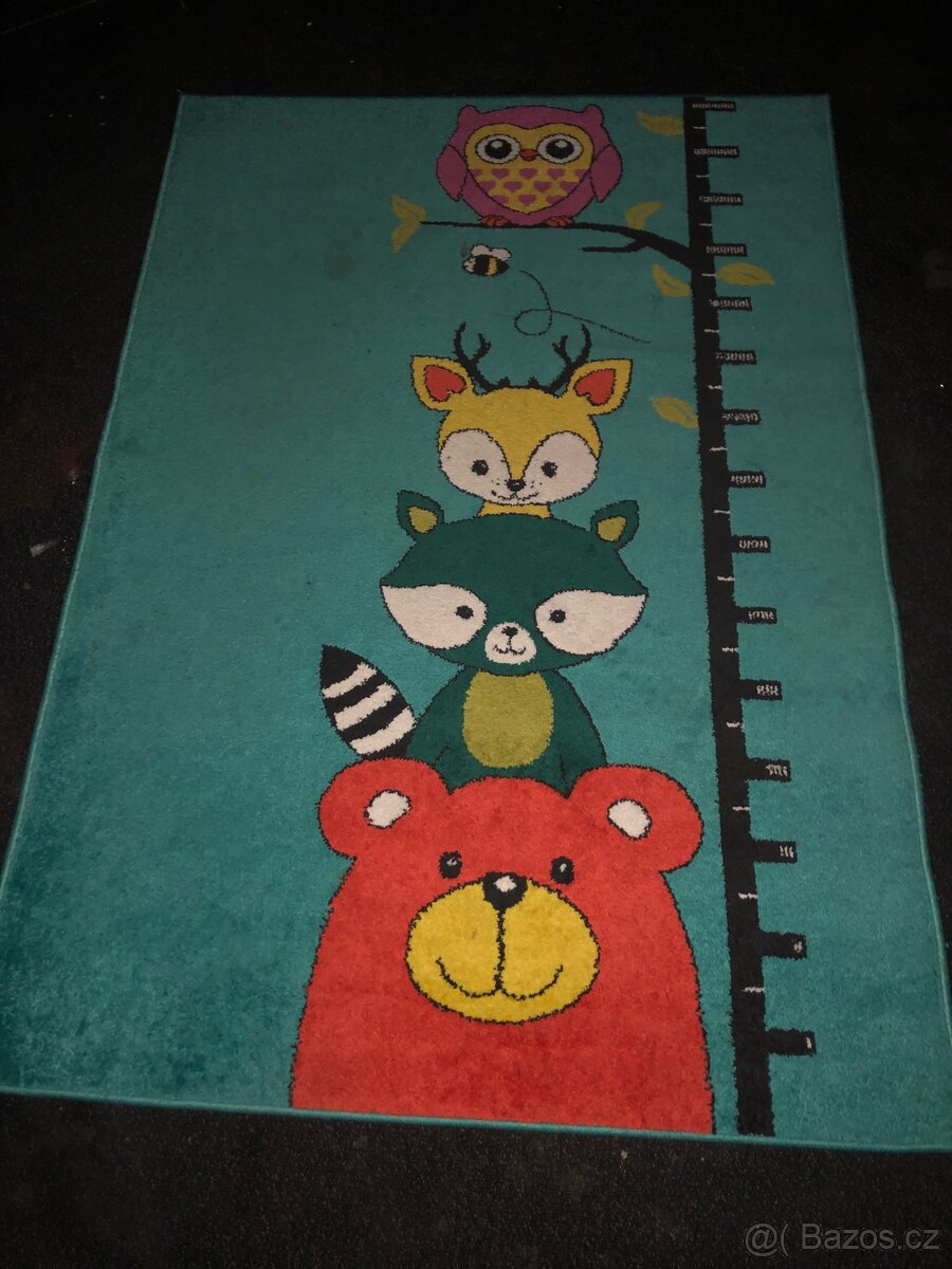 Použity,leč zachovaly kusovy koberec,s dětským vzorem a rozměrem 120x190 cca