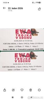2vstupenky, pořizovací cena 3000 Sleva na 2600kc.Bohuzel se nemůžeme zúčastnit.koncert je dne 16.6.sektor 119, řada 17.