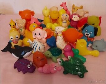 Nabízím balík dětských hračekzvířátka,cca 30,plast,guma,známky běžného používání,stav viz foto.gumová zvířátka některá pískají.