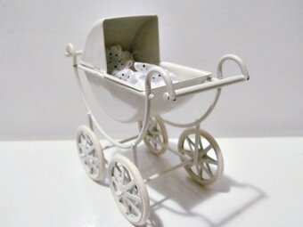 Malý kovový kočárek, mini panenky.Starý viktoriánský styl.
