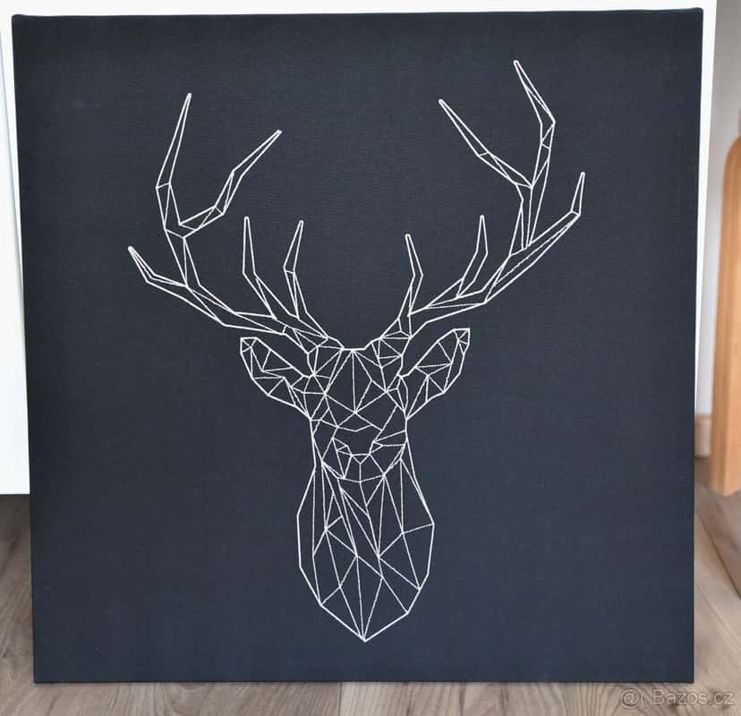 56, 5 x 56,5cm, tl. 2cm. Plátno na dřevěném rámu. Motiv je vyšitý stříbřitou nití. Balíkovna 75Kč. Osobně Všeruby u Plzně.