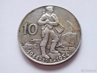 Stříbrná pamětní mince Československo č.1Prodám stříbrnou pamětní minci Československo. 1954 10kčs Výročí SNP