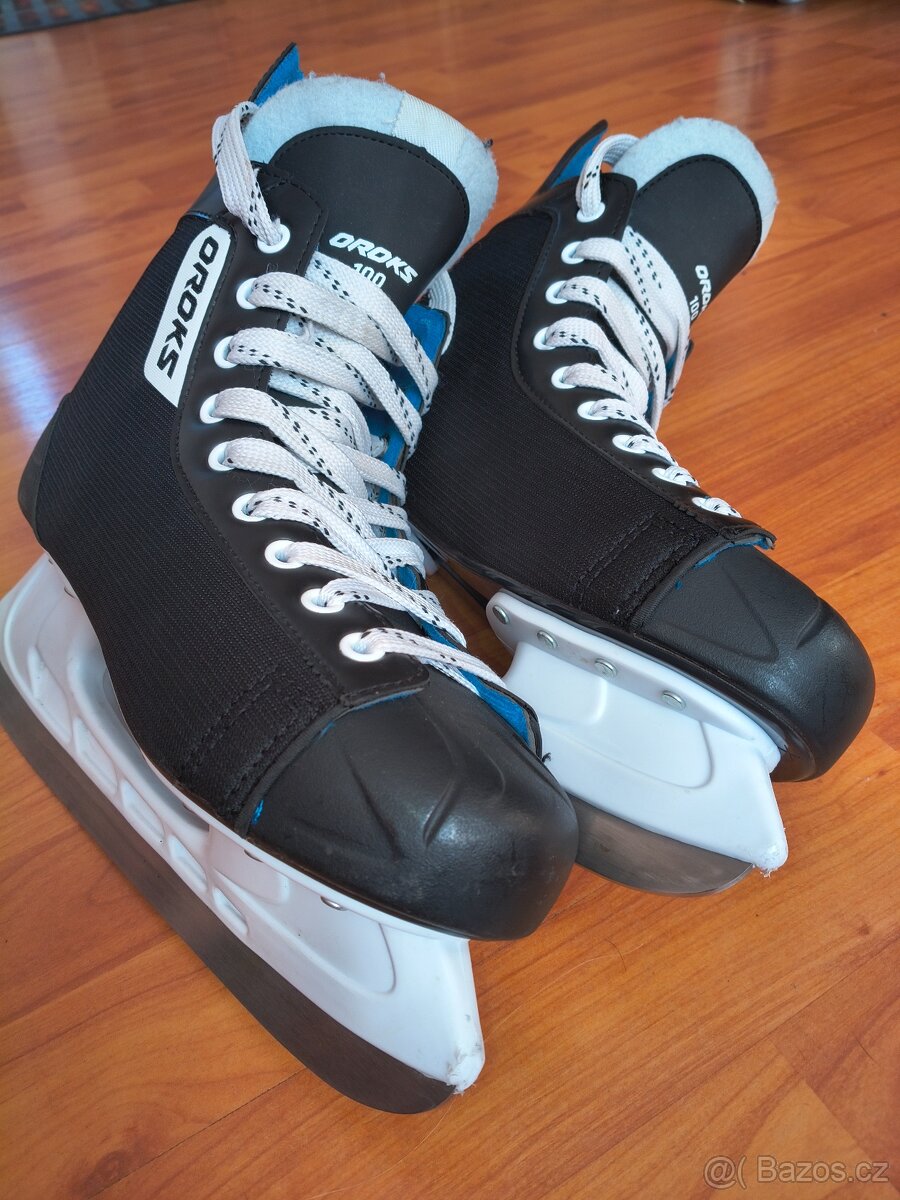 Brusle OROKS 100 vel.43Brusle byly na ledě asi 10x ,neponičené ,nože broušené před 3mi veřej.brusleními. Délka stélky 27.5cm