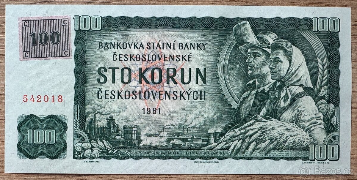 100 Kčs 1961 s kolkem UNC