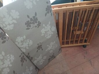 Prodám dětskou dřevěnou ohrádku 1x1 m. Na kolečkách. Deska je rozdělena na 2 poloviny - super pro manipulaci a transport. Nově přečalouněno. Osobní předání Lesonice nebo Třebíč.