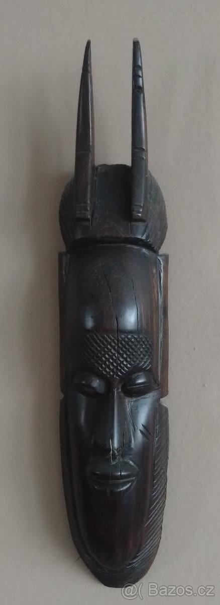 Na prodej docela těžká ,nečištěná dřevěná maska 33x7x4 váha 758g. Maska je celá z jednoho kusu. Není nijak opravovaná není nijak prasklá.