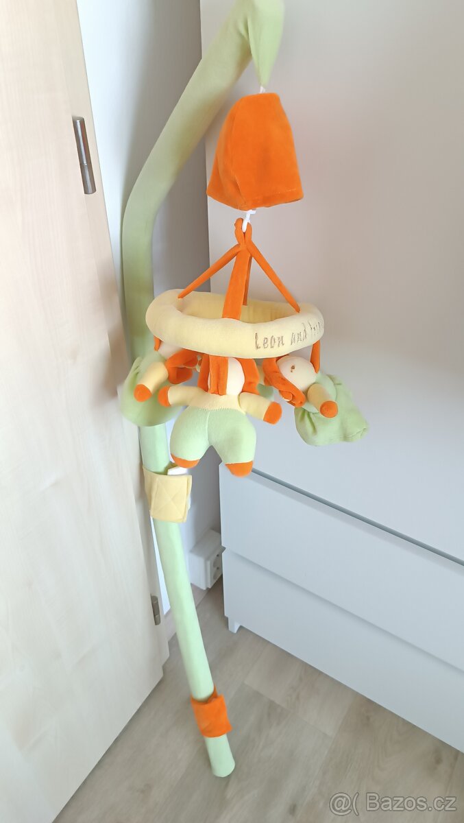 Kolotoč nad postýlku, na manuální natahování, potom ye točí Měli jsme i babičky, vhodný třeba na chalupu, chatu I když nehrál, syn si hračky chytal/tahal rukama a je fakt bytelný oproti těm novodobým :D Upevnění na 2 suché zipy na té tyči České Budějovice Pražské předměstí