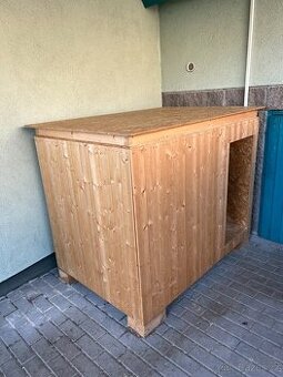Prodám boudu pro velkého psa: Vnější rozměry : Délka x šířka x výška 152 x 102 x 120 cm Vnější plášť z palubek, vnitřní z OSB desek, mezi 5 cm polystyren, střecha odnímatelná