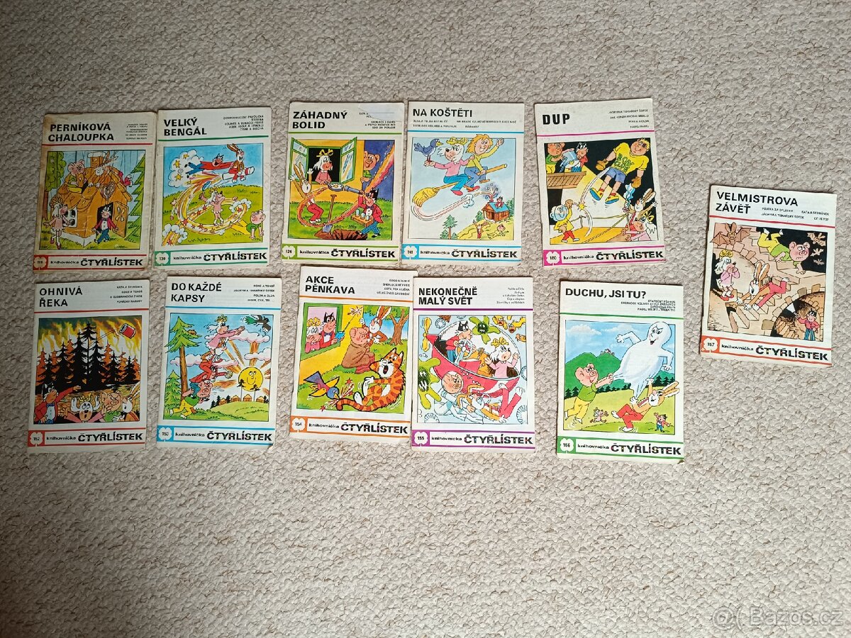 Cena: Nabídněte. Nabízím starší použité casopisy Čtyřlístek. Jsou zachovalé, jen dva mají hřbety slepené páskou. Celkem jde o 11 kusů, konkrétně: 118 Perníková chaloupka, 120 Velký bengál, 124 Záhadný bolid, 141 Na koštěti, 152 Ohnivá řeka, 153 Do každé kapsy, 154 Akce pěnkava, 155 Nekonečně malý svět, 156 Duchu, jsi tu?, 157 Velmistrova závěť, 169 Dup. K prohlédnutí a vyzvednutí v Praze 5 Stodůlkách popřípadě pošlu dohodnutou dopravou.