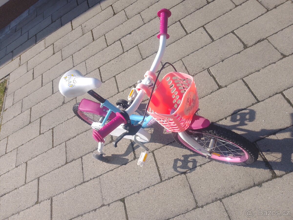Prodám starší dětské kolo s pomocnými kolečky.Plně funkční .Velikost 16. Věk dítěte cca. 4-6 let.