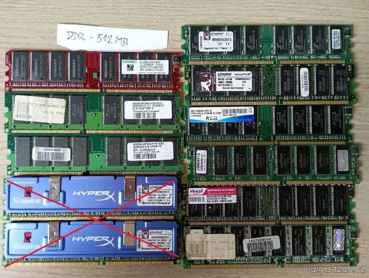 DDR2 1Gb - 100Kč/kus DDR2 512Mb - 50Kč/kus DDR2 1Gb s chlazením - 120 Kč/kus DDR 1Gb - 100 Kč/kus DDR 512Mb - 50 Kč/Kus DDR černá s chlazením bez označení - 50Kč Platí do smazání inzerátu Možno poslat přes zásilkovou za 79Kč nebo osobní vyzvednutí.