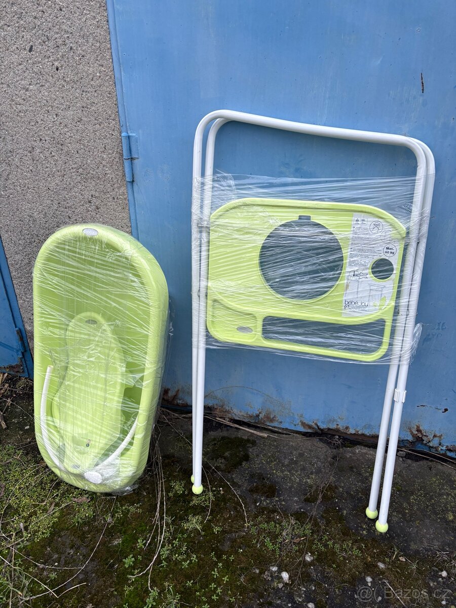 Prodáváme dětskou plastovou vaničku se stojanem Bebe-jou. Barva světle zelená. S dávkovačem mýdla, teploměrem, podloužkou pro malá miminka, včetně stojanu s poličkou. Stav použitá, bez zjevného poškození. Cena 200,-Kč. Pouze osobní převzetí.