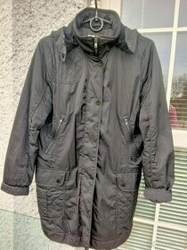 Rozměry prsa 56 cm, délka 80 cm, rukáv od ramenního švu 64 cm jde založit a tím zkrátit. Kapuce, kapsy a část horní pravé strany prošívané. Vzadu jde zúžit dvěma cvočky. Střižená do A. Elegantní a slušivá. Barva je sytě černá a fialová je tmavší.